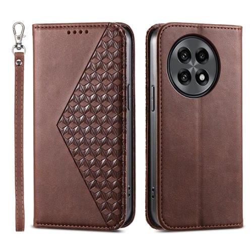 Funda de Cuero con Textura de Cuadrícula Rómbica para OnePlus 13 (Marrón)
