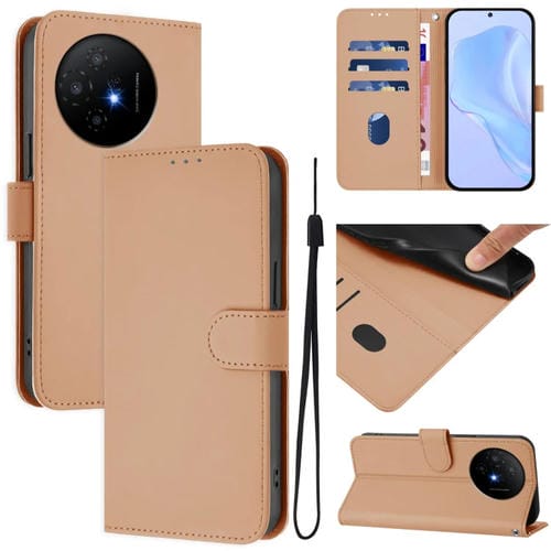 Funda de piel con cordón para teléfono TCL 50 Le con acabado liso (Naranja)