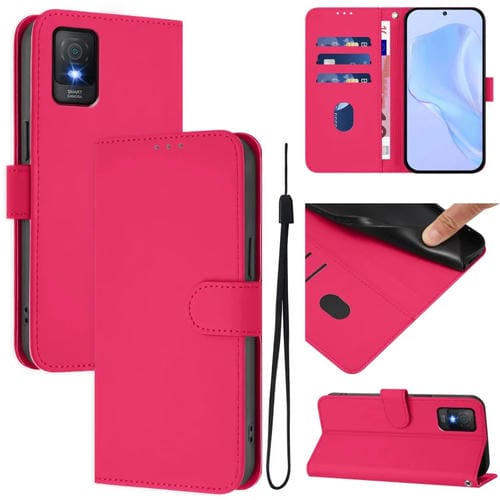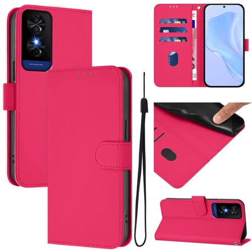 Funda de Cuero con Cordón para Teléfono TCL 50 5G / 50 Xe Nxtpaper 5G (Rojo Rosa)