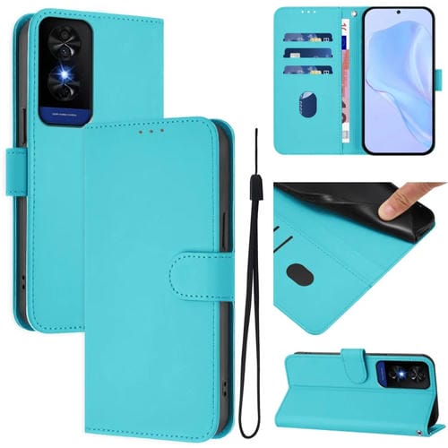 Funda de Piel para Teléfono TCL 40 Se con Textura y Cordón (Azul Cielo)
