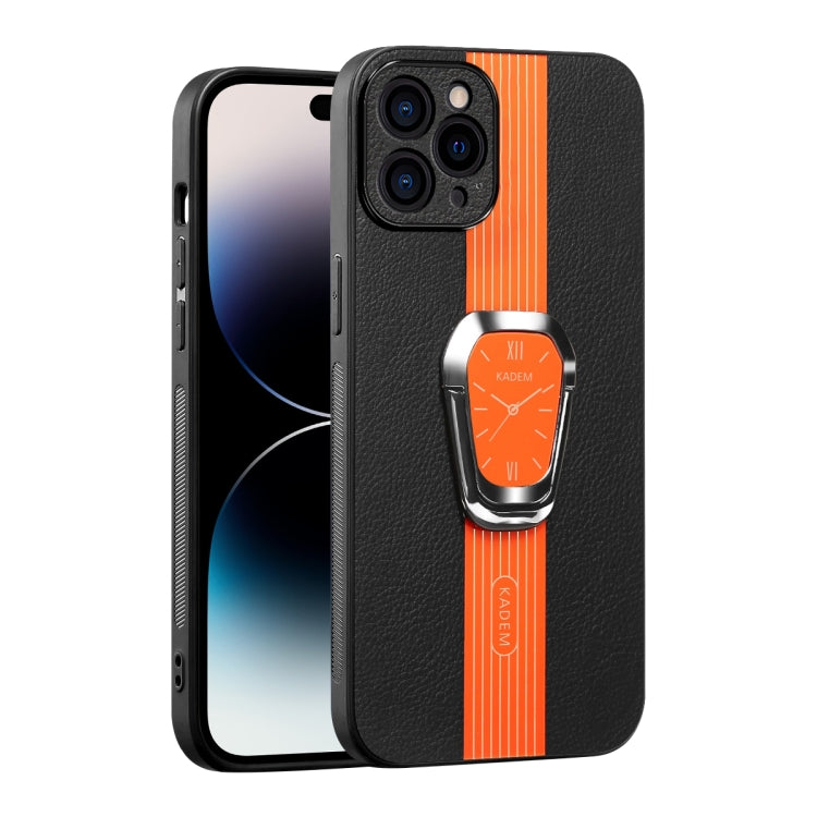 Estuche Magnético para iPhone 14 Pro Max con Parte Trasera de Cuero Litchi y Soporte (Naranja)