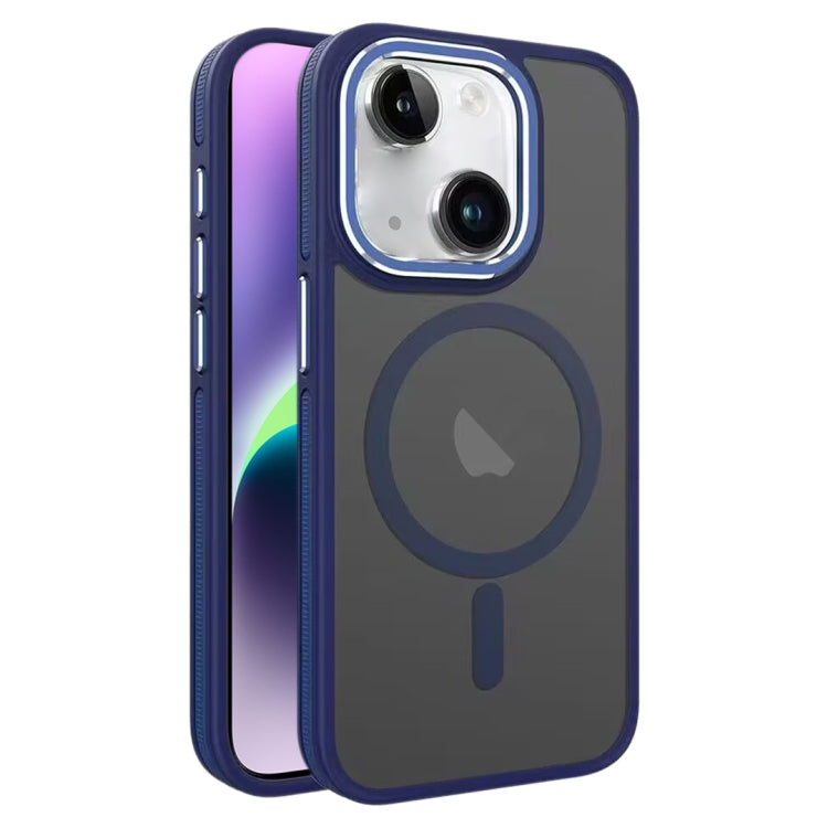 Estuche Magnético para Teléfono iPhone 14 Plus Magsafe Esmerilado de Dos Colores (Azul)