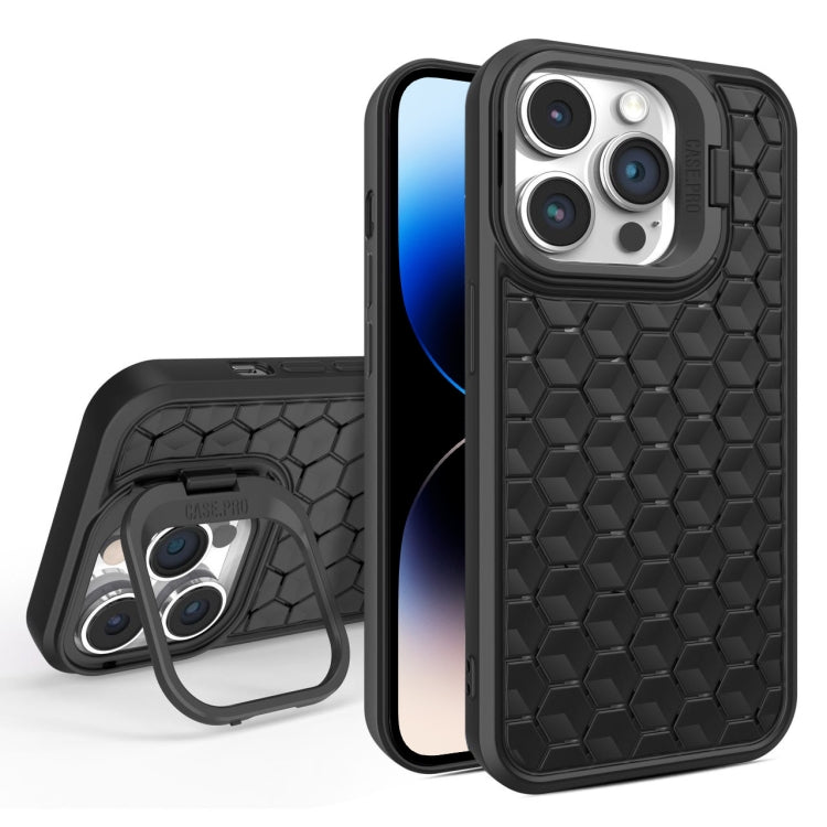 Estuche Magnético para Teléfono iPhone 14 Pro Max con Soporte para Lente Radiant Honeycomb (Negro)