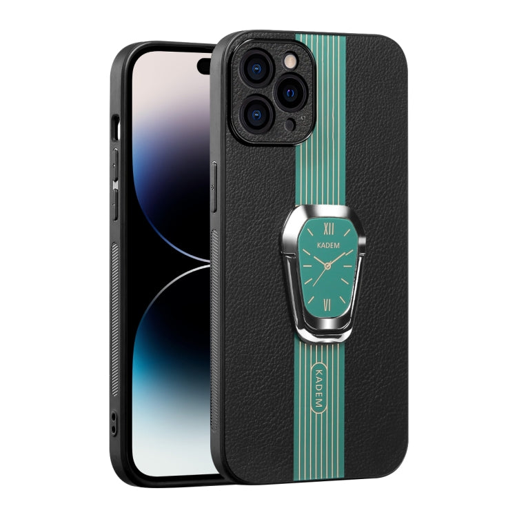 Estuche Magnético para Teléfono iPhone 14 Pro Max Parte Trasera Cuero Litchi con Soporte (Verde)