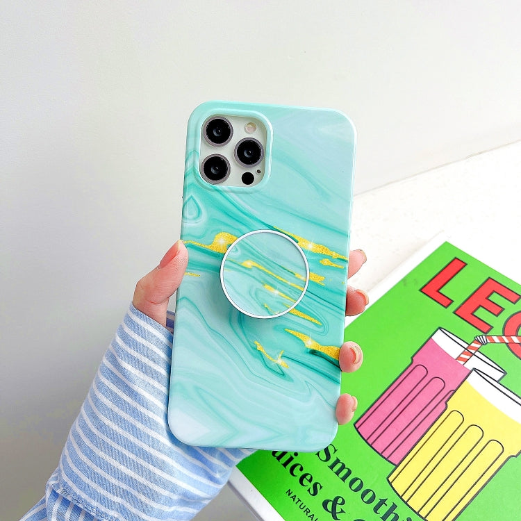Caja para iPhone 11 Pro Espleada Mármol Acristalado con Soporte Plegable (Verde)