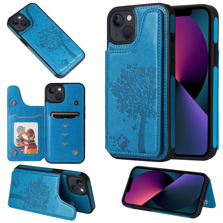 Estuche a Prueba de Golpes con Patrón de Árbol de Gato para iPhone 13 Mini (Azul)