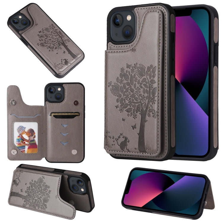 Estuche a Prueba de Golpes para iPhone 13 Mini Patrón Árbol de Gato (Gris)