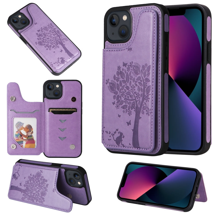 Estuche a Prueba de Golpes para iPhone 13 Mini Patrón Árbol de Gato (Púrpura)