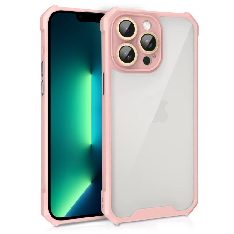 Estuche Acrílico para iPhone 13 Pro Max a Prueba de Golpes con Película de Vidrio para Lentes (Rosa)