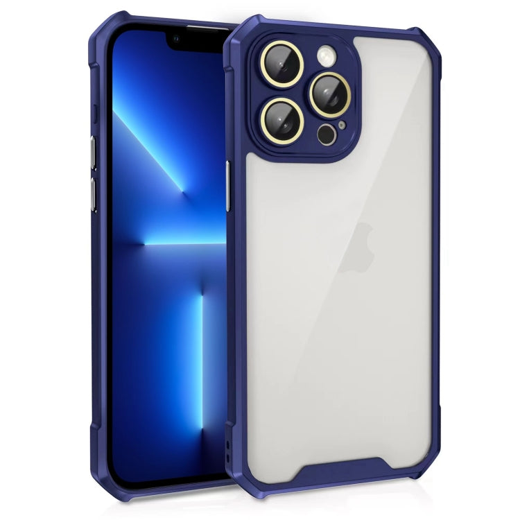 Estuche Acrílico para iPhone 13 Pro a Prueba de Golpes con Película de Vidrio para Lentes (Azul)