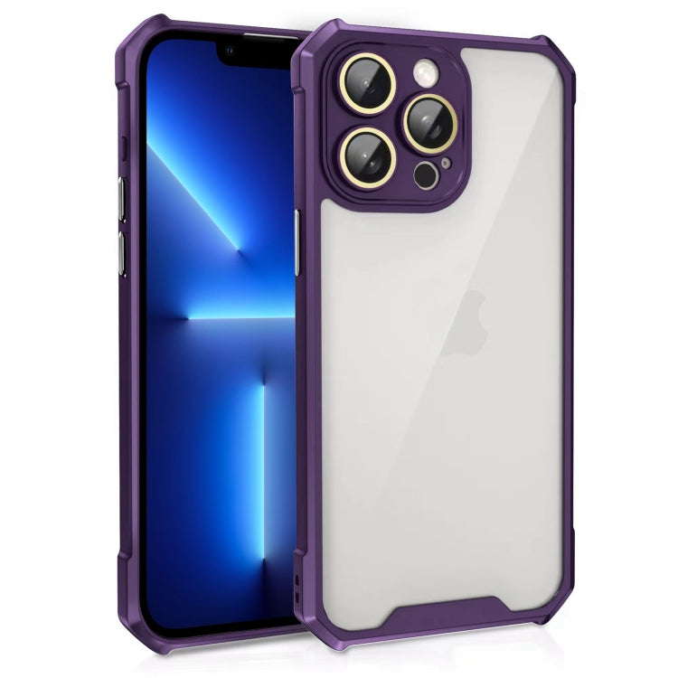 Estuche Acrílico para iPhone 13 Pro Max a Prueba de Golpes con Película de Vidrio para Lentes (Púrpura)
