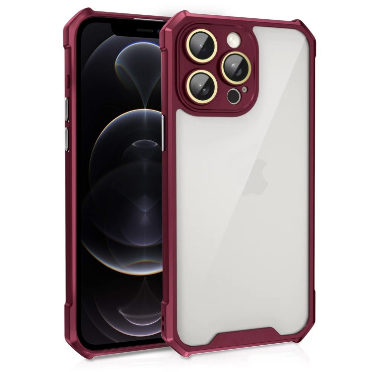 Estuche Acrílico para iPhone 12 Pro a Prueba de Golpes con Película de Vidrio para Lentes (Rojo Vino)