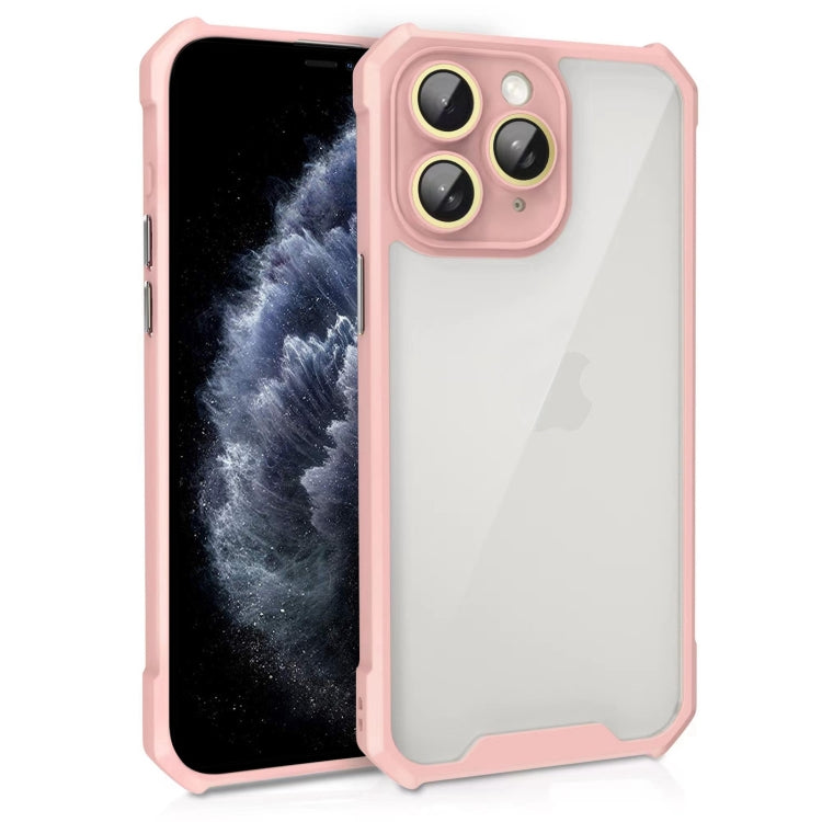 Estuche Acrílico para iPhone 11 Pro Max a Prueba de Golpes con Película de Vidrio para Lentes (Rosa)
