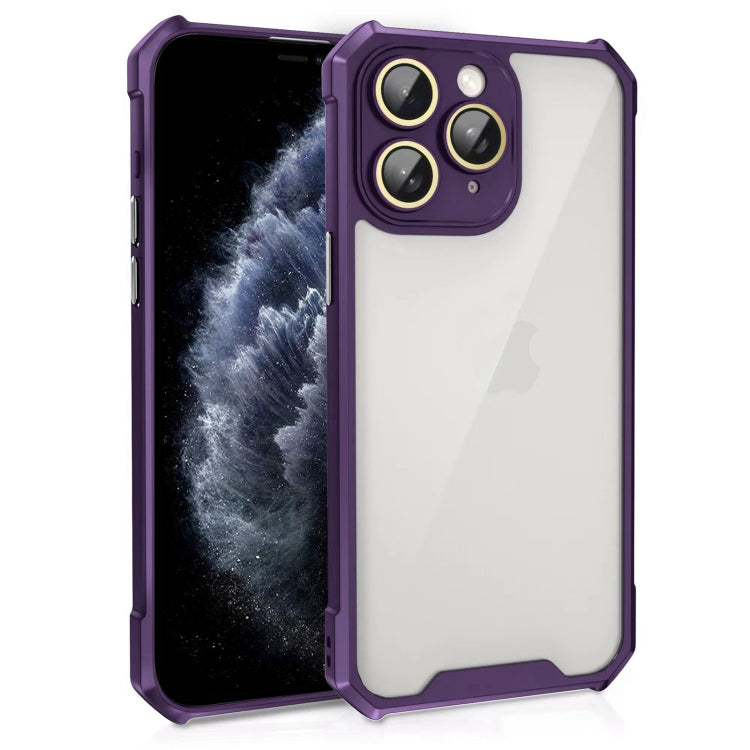 Estuche acrílico para iPhone 11 Pro Max a prueba de golpes con Película de vidrio para Lentes (Púrpura)