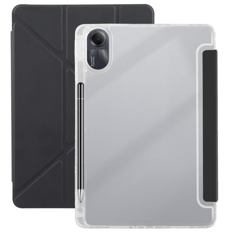 Funda de cuero acrílico transparente deformable para Redmi Pad SE 11 2025/Pad 2 (negro)