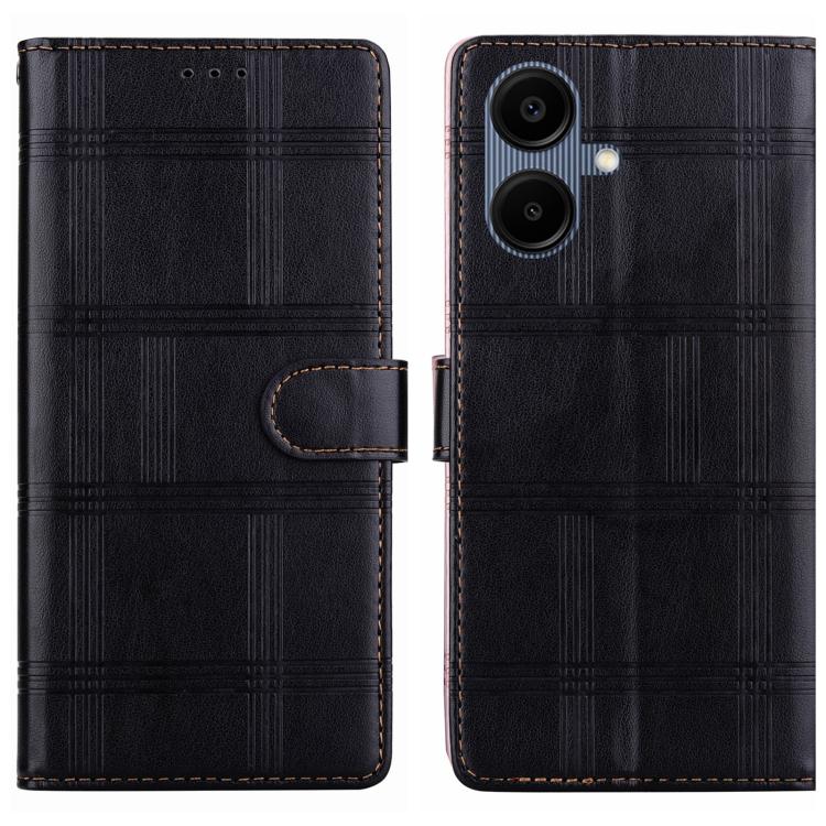 Funda de piel con relieve a cuadros para Samsung Galaxy A06 4G/5G (negra)