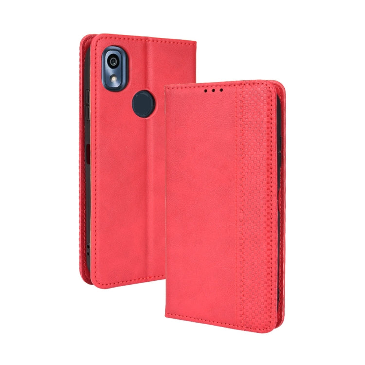 Funda de Cuero con Hebilla Magnética para Kyocera Ky-51B Retro (Rojo)
