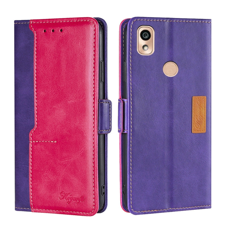 Funda de Cuero con Hebilla Lateral para Kyocera Digno Sx4 5G (Púrpura y Rojo Rosa)