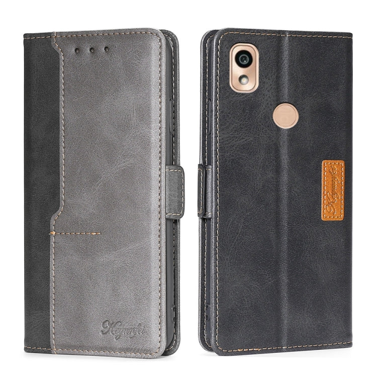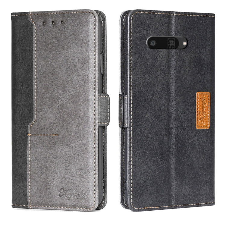 Funda de Cuero con Hebilla Lateral para Kyocera Digno Sx4 5G (Negro y Gris)