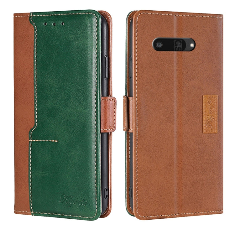Funda de Cuero con Hebilla Lateral para Kyocera Digno Sx4 5G (Marrón Claro y Verde)