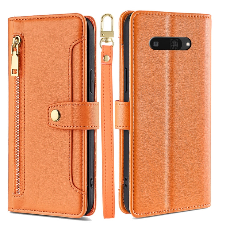 Funda de Cuero con Cremallera y Textura de Oveja para Kyocera Digno Sx4 5G (Naranja)