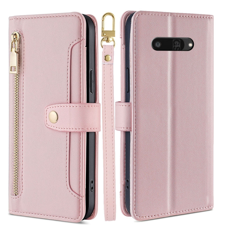 Funda de Cuero con Cremallera y Diseño de Oveja para Kyocera Digno Sx4 5G (Rosa)
