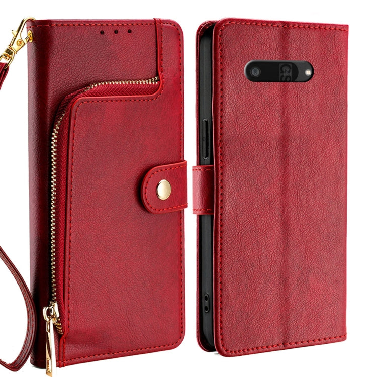 Funda de Cuero con Cremallera para Teléfono Kyocera Digno Sx4 5G (Rojo)