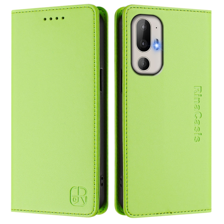 Funda de Cuero Rfid con Doble Pliegue y Succión Magnética para HTC U24 Pro Rc01 (Verde Hierba)