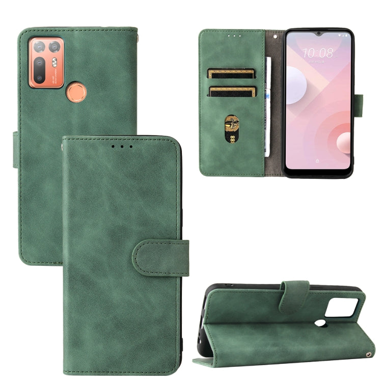 Funda Flip Leather con Skin Feel Magnética para HTC Desire 22 Pro (Verde)