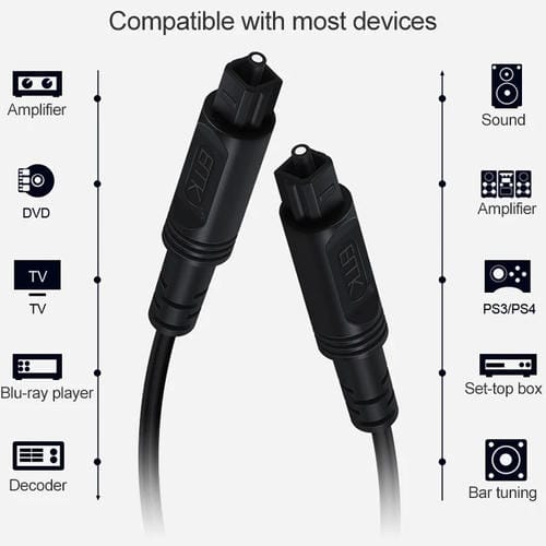 Este Cable es compatible con la mayoría de dispositivos que utilizan Conectores de Puerto cuadrado para audio Digital, incluyendo amplificadores, reProductores Blu-ray y televisores.