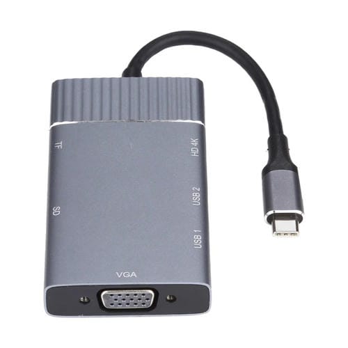Estación de Acoplamiento USB-C 7 en 1 con Doble USB 3.0, TF/SD, HDMI/VGA y Conector de 3,5mm Multifunción Tipo C