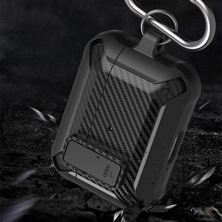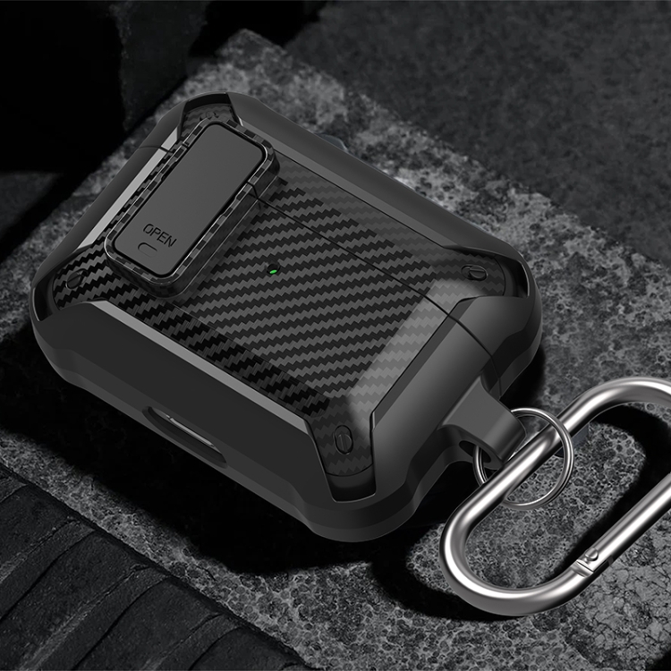 Auriculares inalámbricos funda protectora fibra de carbono a prueba de golpes con interruptor para Airpods Pro (Azul negro)