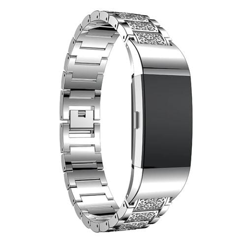 Banda de reloj de acero inoxidable sólido con tachuelas de diamante para Fitbit Charge 2 (plata)