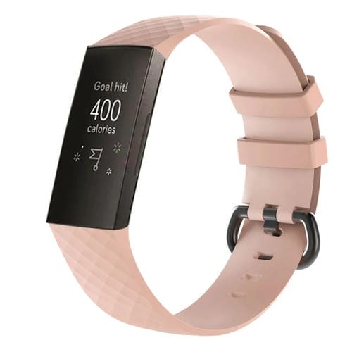 Banda de reloj de silicona de patrón de diamante para carga de fitbit 3 tamaño pequeño: 190*18 mm (rosa)