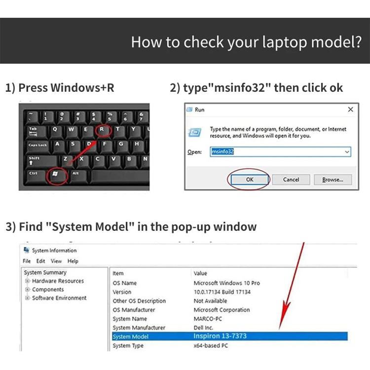 7. Modelos de portátiles compatibles: Inspiron 13 serie 5370: 13-5370-D1305P, 13-5370-D1505S, 13-5370-D1605P, 13-5370-D1605S, 13-5370-D1625P, 13-5370-D1625S, 13-5370-D1725S13-5370-D2605P, 13-5370-D2605S, 13-5370-D2625P, 13-5370-D2625S, 13-5370-D2725S, 13-5370-058 Inspiron 13 Serie 7370: 13-7370-7VF2T, 13-7370-8HK47, 13-7370-1733, 13-7370-1740, 13-7370-9665, 13-7370-9696, 13-7370-9702, 13-7370-DV18W, 13-7370-MKG04, 13-7370-MMFM13-7370-D1505S, 13-7370-D1601P, 13-7370-D1601S, 13-7370-D1605P, 13-7370-D1605S, 13-7370-D1701P, 13-7370-D1701S, 13-7370-D1705P, 13-7370-D1705S, 13-7370-D1805P, 13-7370-D1805S, 13-7370-D2605S Inspiron 13 Serie 7373: 13-7373-0842, 13-7373-0859, 13-7373-086613-7373-0873, 13-7373-75VK0, 13-7373-G3VVK, 13-7373-VFNYM