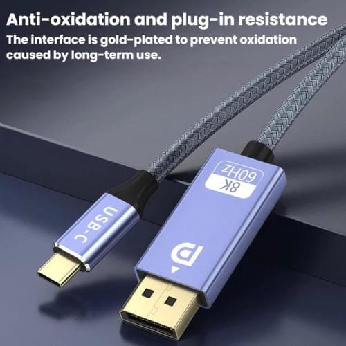 Cable adaptador unidireccional de 1 m tipo C a DP1.4 8K 60 Hz HD para consola de juegos de computadora, monitor, teléfono móvil, cable de conexión de video