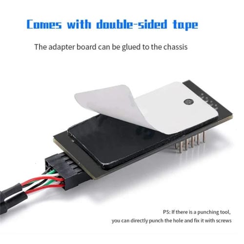 La Placa Adaptadora incluye una cinta adhesiva de doble cara que permite su fijación segura y estable en el interior del Chasis del ordenador.