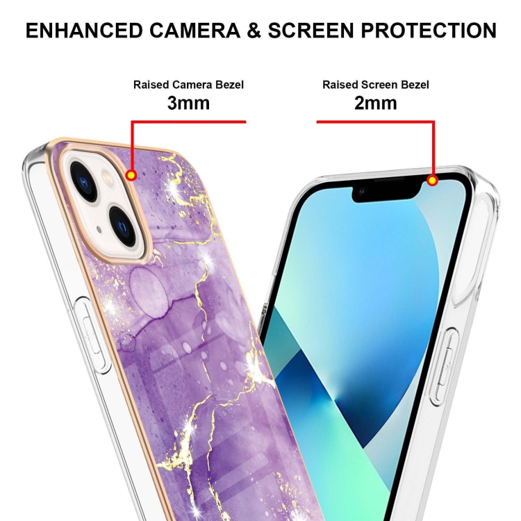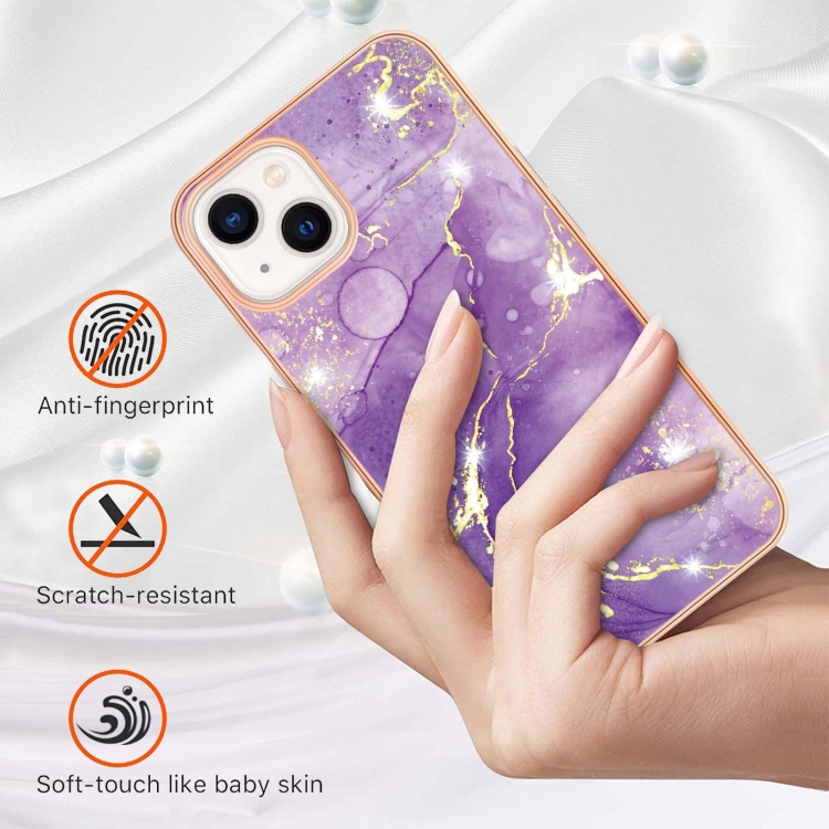 Caja del Teléfono Imd TPU Doble Cara Patrón Mármol Galvanizado iPhone 15 (Púrpura)