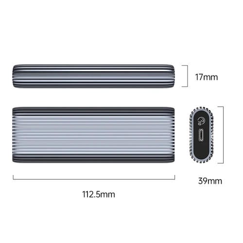 - Interfaz de salida USB 3.2 Gen2 Tipo-C con velocidad de transmisión de hasta 10 Gbps; dimensiones de 112.5x39x17 mm; Soporte para discos de hasta 4TB; incluye Cable Tipo-C a Tipo-C/USB-A de 30 cm