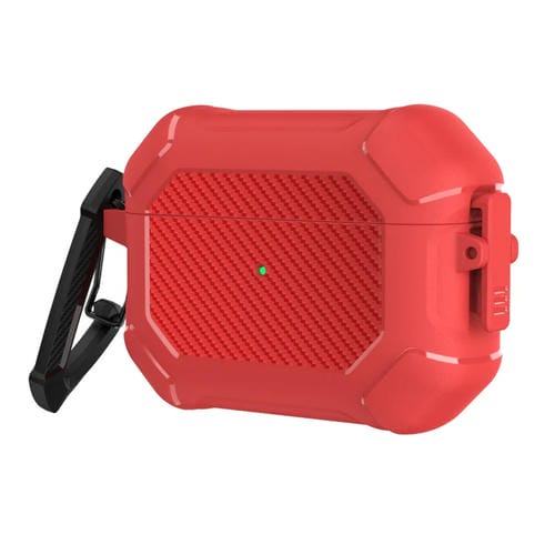 Funda Protectora para Auriculares Carbon Brazing Dimension TPU + PC con Bloqueo de Interruptor y Mosquetón para AirPods Pro (Rojo)