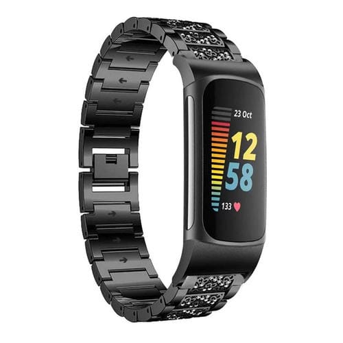 Correa de acero inoxidable con diamantes de imitación para Fitbit Charge 6/5 de 18 mm (negro)