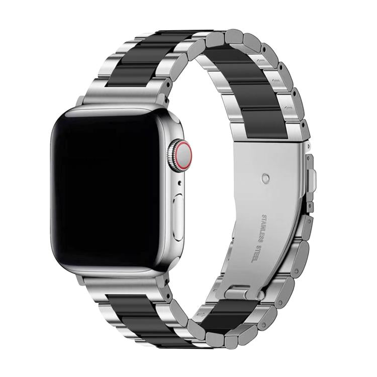 Correa de acero inoxidable con tres cuentas y película curva 3D para Apple Watch Series 42 mm (plateada y negra)