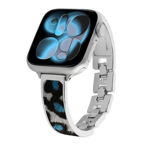 Correa de aleación con estampado de leopardo para Apple Watch de 46 mm, 49 mm, 45 mm y 44 mm (plateada)