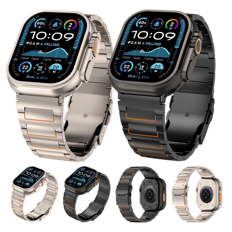 Correa de aleación de titanio con cierre de seguridad en forma de I para Apple Watch de 46 mm / 49 mm / 45 mm / 44 mm (negro/naranja).