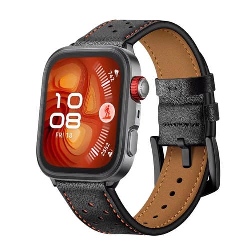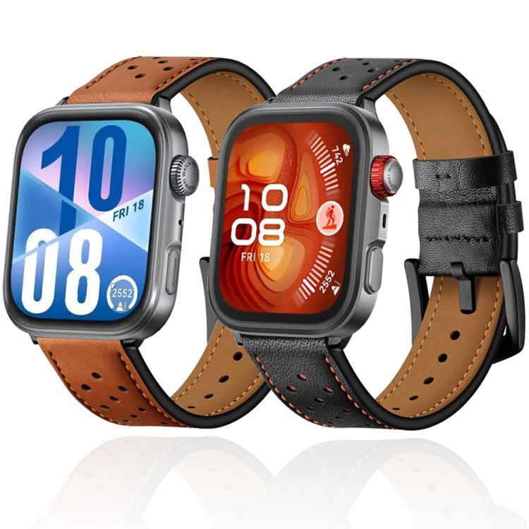 Correa de cuero con agujeros para Huawei Watch Fit4, Fit4 Pro y Fit3 (negra)
