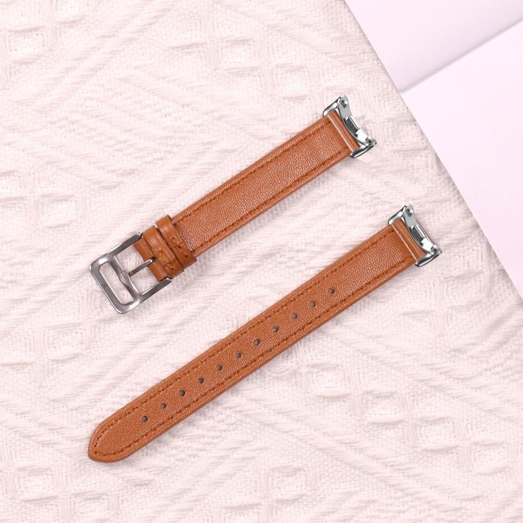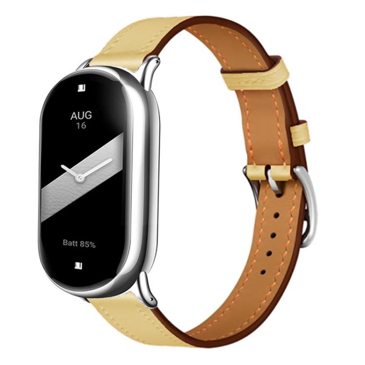 Correa de cuero con hebilla plateada fina para Xiaomi Smart Band 10/9/8 (amarilla)