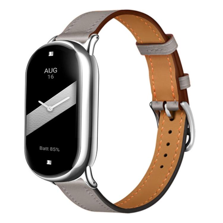 Correa de cuero con hebilla plateada fina para Xiaomi Smart Band 10/9/8 (gris)