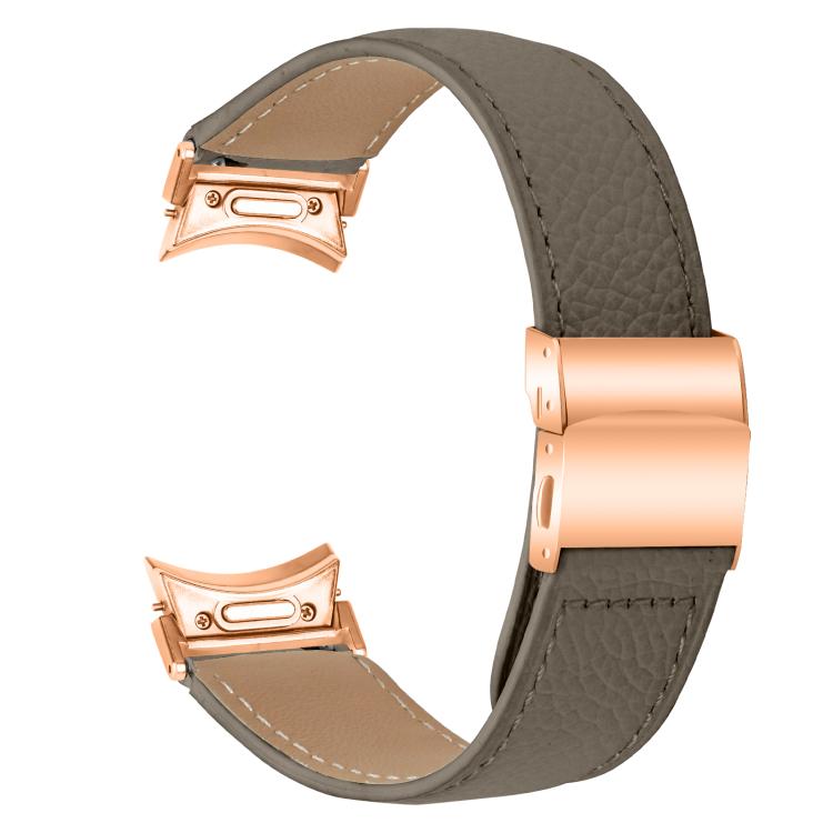 Correa de cuero con hebilla trasera de tortuga en oro rosa y textura de lichi de liberación rápida para Samsung Galaxy Watch 7 (40/44 mm) (gris)