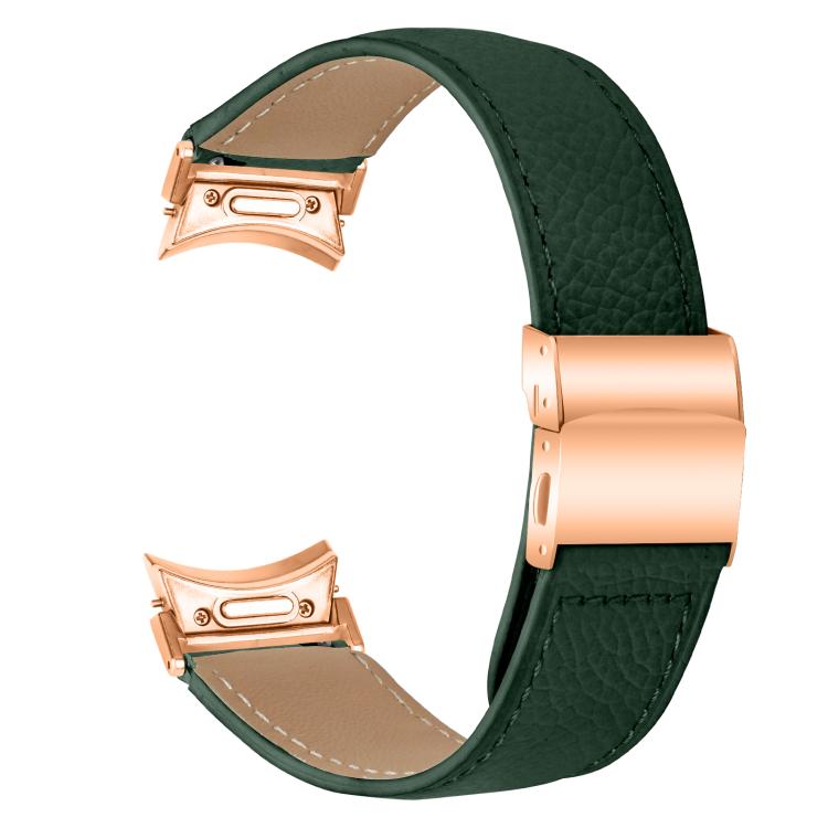 Correa de cuero con hebilla trasera de tortuga en oro rosa y textura de lichi de liberación rápida para Samsung Galaxy Watch 7 de 40/44 mm (verde)