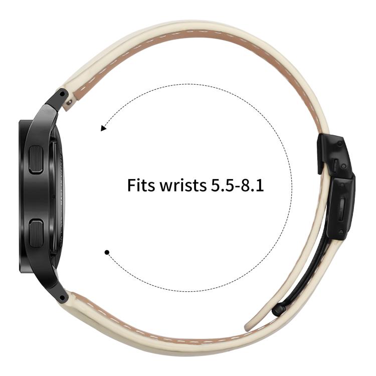 Correa de cuero con hebilla trasera de tortuga negra y textura de lichi de liberación rápida para Samsung Galaxy Watch 7 de 40/44 mm (blanco cremoso)
